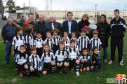 Los Capitanes del Juvenil entregando ramos de flores a las esposas de los homenajeados y el Presidente de la Federación con algunos de los futbolistas de la escuela