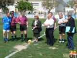 A continuación se hizo el saque de honor a cargo de los padres del homenajeado, rodeados de los capitanes de ambos conjuntos, los colegiados y los organizadores del evento.