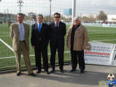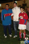 Obsequios entregados por los futbolistas del F.C. Cartagena: MIKI ROQUE y CARMONA y el Portero del Cartagena F.C.: RAÚL GODÍNEZ