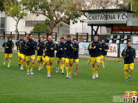 La plantilla del Cádiz C.F, realizó el viernes 12 de Marzo una sesión de estiramientos en el campo de césped natural de la Ciudad Deportiva Gómez Meseguer, preparando el choque liguero contra el F.C. Cartagena de 2ª División.