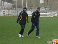 La sesión dirigida por el preparador físico del equipo, fue seguida por Víctor Espárrago (entrenador del Cádiz C.F.) que estuvo dando vueltas al campo con su segundo.
