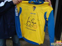 Al finalizar los estiramientos, los jugadores dejaron su firma en una camiseta del equipo que entregaron al Cartagena F.C.