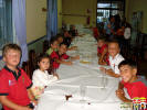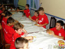 Con una cena en el Restaurante de la Ciudad Deportiva, en la que ambas plantillas hicieron de todo menos cenar, los jugadores fueron recibiendo detalles del club por los éxitos logrados.