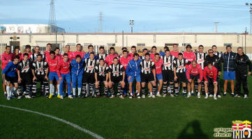 La plantilla al completo del Decano del Futbol Español se inmortalizó en una foto con el Primera Territorial del Efesé entrenado por Pedro Furió que tenía que disputar un encuentro liguero en los campos anexos de césped artificial.