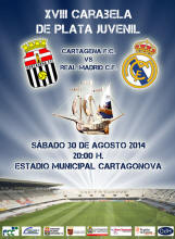 El Cartagena F.C. juvenil, que milita en la división de honor, disputará el sábado 30 de agosto, a las 20 horas, con el Real Madrid la décimo octava edición de la Carabela de Plata Juvenil en el Estadio Municipal Cartagonova y no en la ciudad deportiva del Polígono Cabezo Beaza, como había sido hasta ahora.
