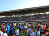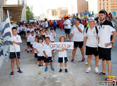 Ante los ojos de los cientos de familiares en las gradas, los 40 clubes participantes desfilaron por el césped del Cartagonova para dar el cierre a esta temporada 2014/15. El acto organizado por la Asociación de Fútbol de Cartagena junto a la Concejalía de Deportes estuvo presidido por el concejal de deportes Diego Ortega.