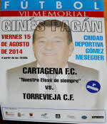 El Viernes 15 de Agosto de 2014 tuvo lugar la 7ª Edición del Memorial Ginés Pagán que se disputa en la Ciudad Deportiva Gómez Meseguer entre el Cartagena F.C. y el C.D. Torrevieja ambos equipos de Tercera División.