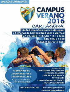 Un divertido y formativo programa cargado de actividades polideportivas en las instalaciones del Cartagena F.C.. El Campus del Málaga CF contará con la supervisión y coordinación de La Academia del Málaga Club de Fútbol.