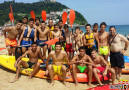Por la mañana, jornada de convivencia de los dos equipos con piragüismo por la playa de Ondarreta.