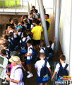 Los aspersores refrescaron a los 55 chavales inscritos en los descansos.