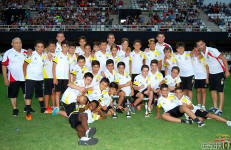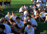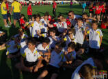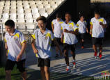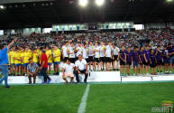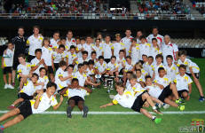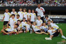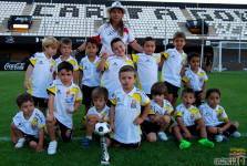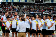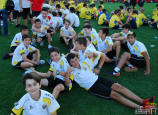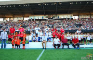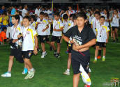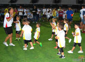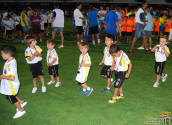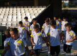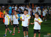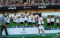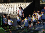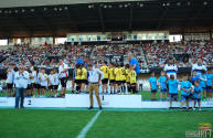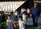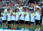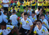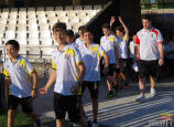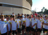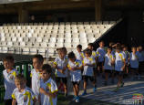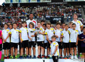 Los jugadores del Cartagena F.C. acompañados por sus monitores fueron ocupando su lugar para el comienzo de la entrega de trofeos