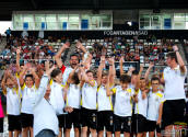 Ante los ojos de los cientos de familiares en las gradas, los 40 clubes participantes desfilaron por el césped del Cartagonova para dar el cierre a esta temporada 2016/17. El acto organizado por la Asociación de Fútbol de Cartagena (AFCT) junto a la Concejalía de Deportes estuvo presidido por la vicealcaldesa Ana Belén Castejón y el Concejal de Deportes, Ricardo Segado.