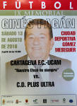 El Memorial Ginés Pagán entre el UCAM Cartagena F.C. y C.D. Plus Ultra será el Sábado 13 de Agosto a partir de las 19:30 en la Ciudad Deportiva Gómez Meseguer.