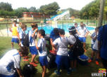 El miércoles el campus se desplazó al centro de Cartagena para una ruta turística que comenzó con la visita al Museo Naval y al Submarino Peral, paseo por el Puerto de Cartagena con foto en el monumento a los Héroes de Cavite hasta llegar al Ayuntamiento de Cartagena donde nos esperaba alcaldesa, Ana Belén Castejón, y la concejala de deportes, Obdulia Gómez. Ambas han estado conversando con los chicos, respondiendo a todas sus dudas y les han hablado sobre el Palacio Consistorial, concretamente sobre la Sala de Isaac Peral, donde se ha hecho una foto con todos ellos. No faltó la foto de familia con Alonso Gómez López, Director General de Deportes de la Región. La jornada terminó en las piscinas municipales de la Casa de la Juventud para hacer algunos ejercicios y tomarse un refrescante baño.