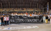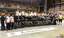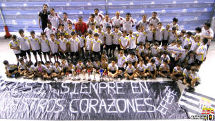 Los canteranos albinegros portaron una pancarta gigante en la que se podía leer "Isi Siempre en Nuestros Corazones"