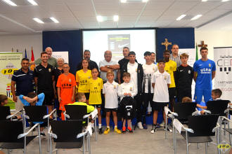 El campus de la Universidad UCAM en Los Dolores acogió la presentación de las nuevas equipaciones del Cartagena FC UCAM para la próxima temporada 2024/25. El acto estuvo dirigido por Mirian Mendoza (UCAM), Jose David Vizcaino (Fútbol emotion - Nike España), Eduardo M. Caro (Ayto. de Cartagena) y Leo Gómez (Cartagena FC).