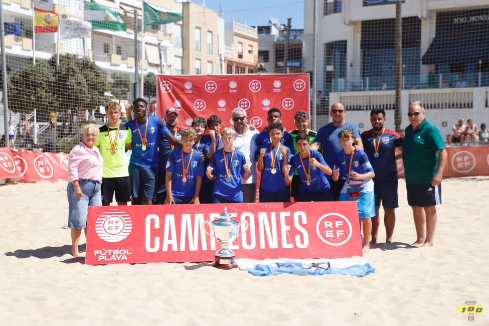 Hasta 5 jugadores del Infantil Superliga: Destiny, Diego, Kubala, Bernal e Ignacio, se proclamaron Campeones de España de fútbol playa. Ignacio el portero subcampeón de España de selecciones